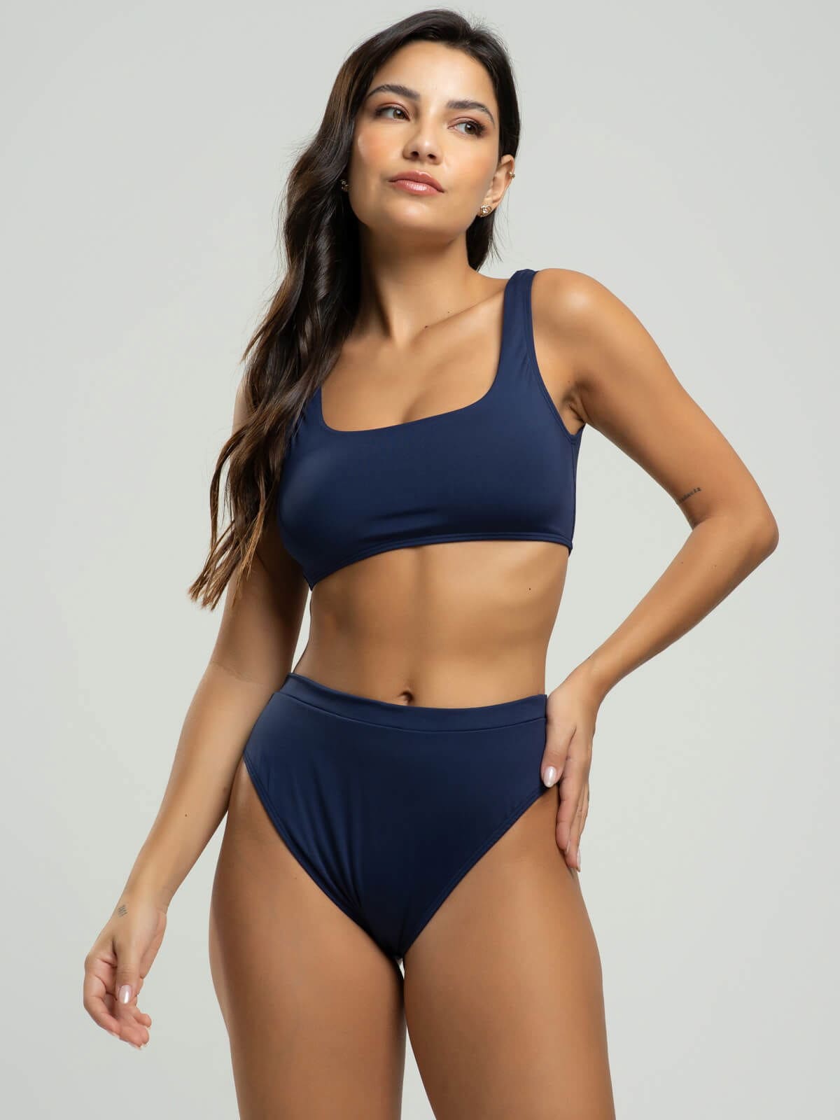 O conjunto de biquini top regata e calcinha hot pant lisa azul marinho, é perfeito para as estações mais quentes do ano. Ideial para se refrescar na praia, piscina ou cachoeira, e super versátil para praticar atividades físicas ou compor um look fashionista. A calcinha hot pants de cintura alta oferece cobertura adicional e um toque retrô ao visual, enquanto o sutiã estilo top faixa com alça regata, possui bojo removível, trazendo mais conforto para peça e oferecendo um ajuste elegante e funcional, ele também pode ser usado para praticas esportivas. As cores inovadoras, únicas e tendências para o verão acrescentam um toque moderno e versátil ao conjunto, tornando-o perfeito para a temporada de calor. Este biquíni é uma combinação equilibrada de estilo, ousadia e funcionalidade. A alta cintura da calcinha hot pants e o sutiã estilo top com alça regata proporcionam um visual moderno e na moda para a temporada de verão. Este produto é confeccionado com um tecido inovador que inclui a tecnologia Proteção UV 50+, proporcionando proteção eficaz contra as radiações prejudiciais do sol, garantindo a segurança da pele durante a exposição solar. Além disso, o tecido incorpora a tecnologia Freeze, que contribui para a rápida evaporação do suor, mantendo o corpo sempre seco.