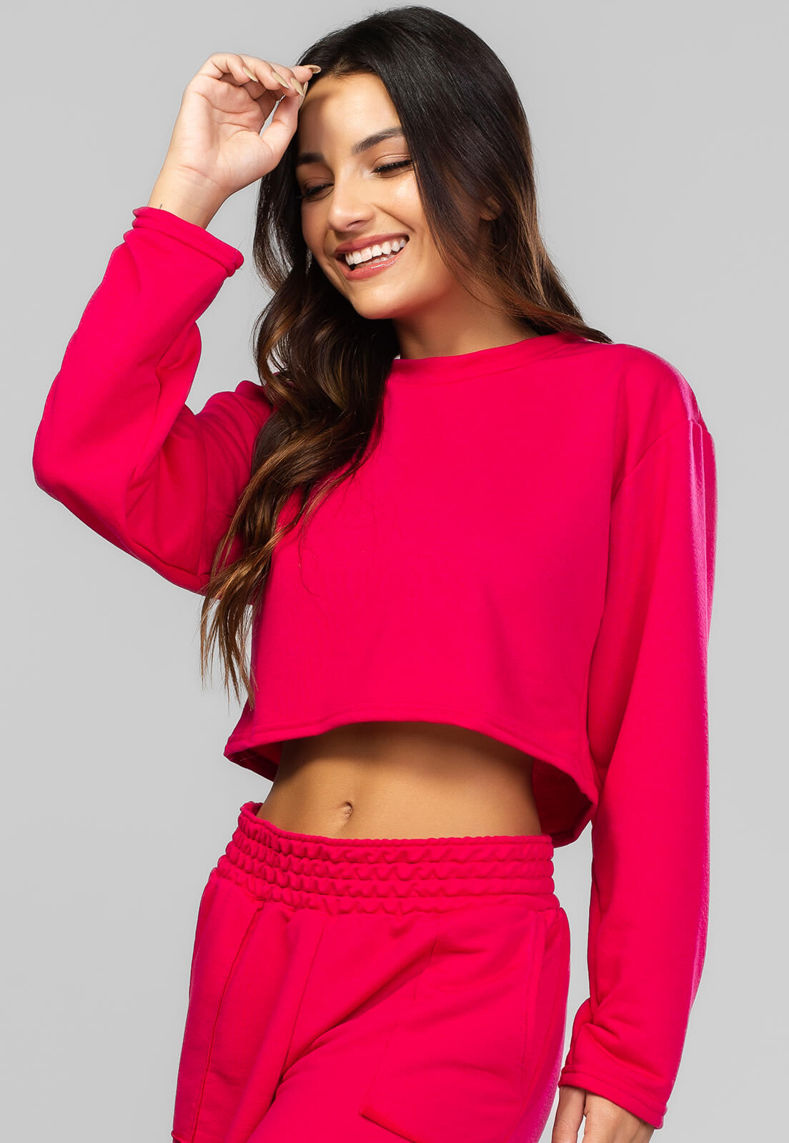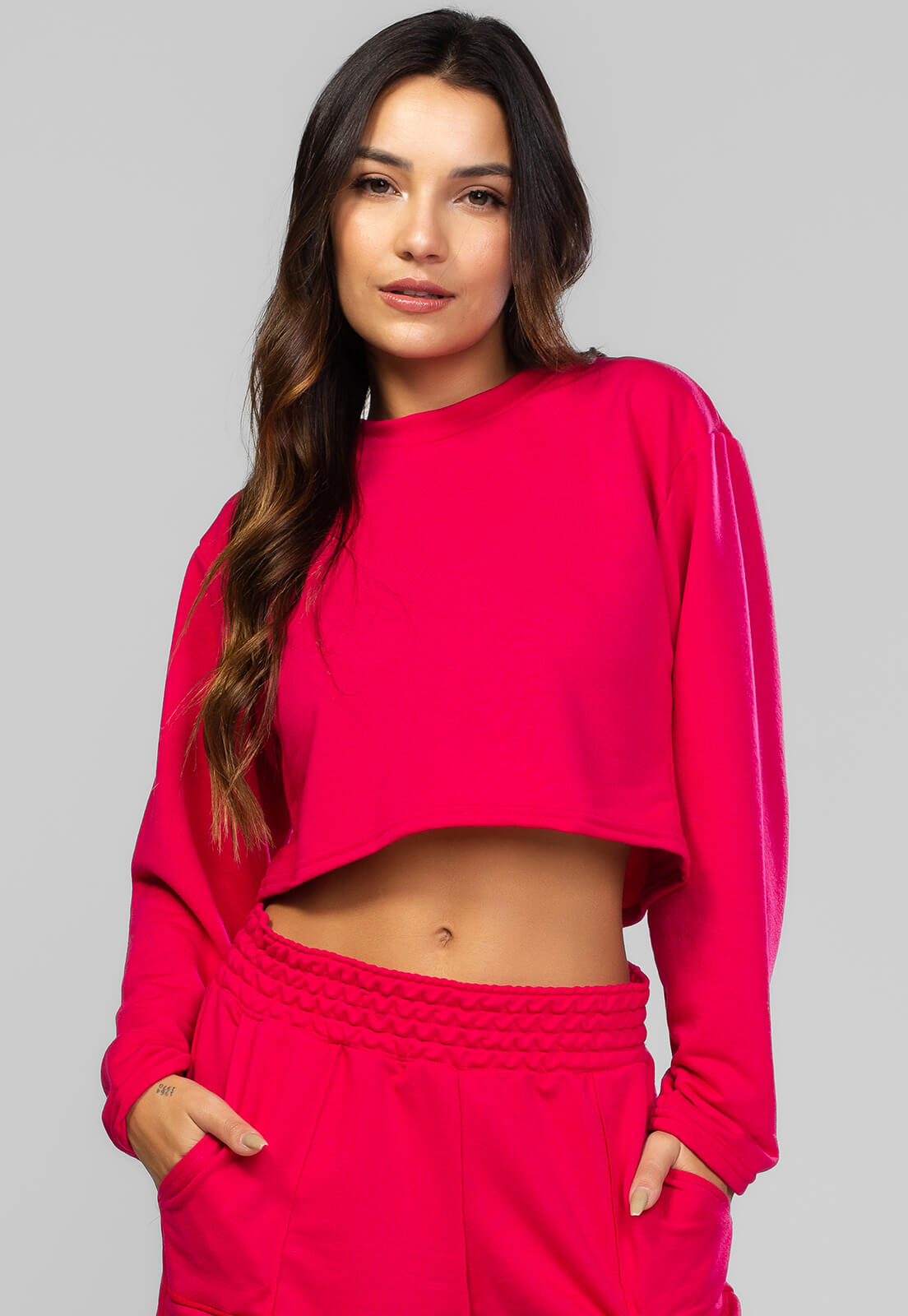 Casaco Cropped Manga Longa Moletinho Pink