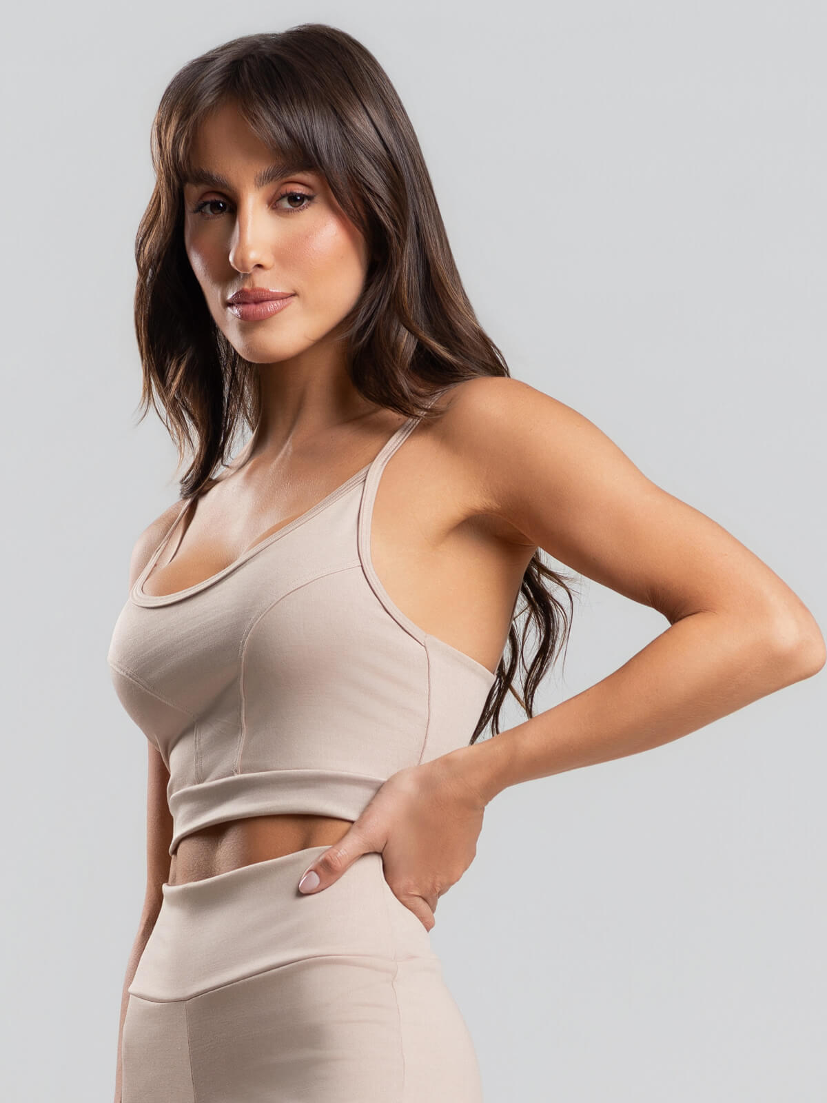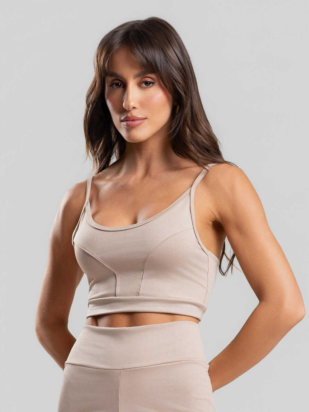Top Recortado Fitness Suplex Bege